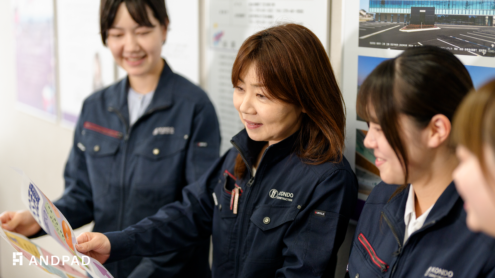 当時は近藤さんを含め女性社員は5人だけでしたが、20年後の現在は53人いる社員の「約28%」が女性という職場環境に。ある年には、就職活動で近藤建設に興味を持ってくれた学生の9割を女性が占めたこともあるほど、女性に支持される建設会社へと変貌を遂げています。